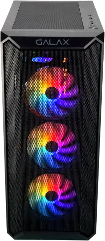 I'm selling my GALAX Mesh mid-tower PC case. I bought it 1-6 months ago and used it lightly, so it's in excellent condition. The case has a full mesh front with 3x ARGB front fans that are working and light up, and there is top mesh ventilation for airflow. No warranty applies. Selling the case only.