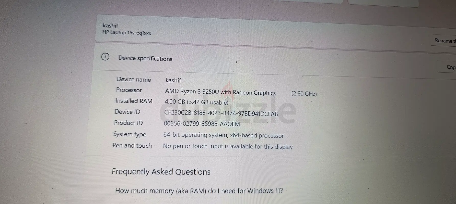 I'm selling my HP laptop, which is in excellent condition and has been lightly used. It features a powerful AMD Ryzen 3 processor that ensures smooth performance, making it great for everyday tasks. With 4 GB of RAM, this laptop handles both work and entertainment efficiently. The 4.5K display resolution is stunning, providing sharp and clear visuals, perfect for watching videos or working on projects. It also has a generous hard drive capacity between 250 to 499 GB, giving you plenty of space for all your files and applications. As this laptop is still relatively new, having been used for just 1-6 months, it operates like new without any issues. It's a reliable choice whether you're a student or a professional looking for a portable computing solution.