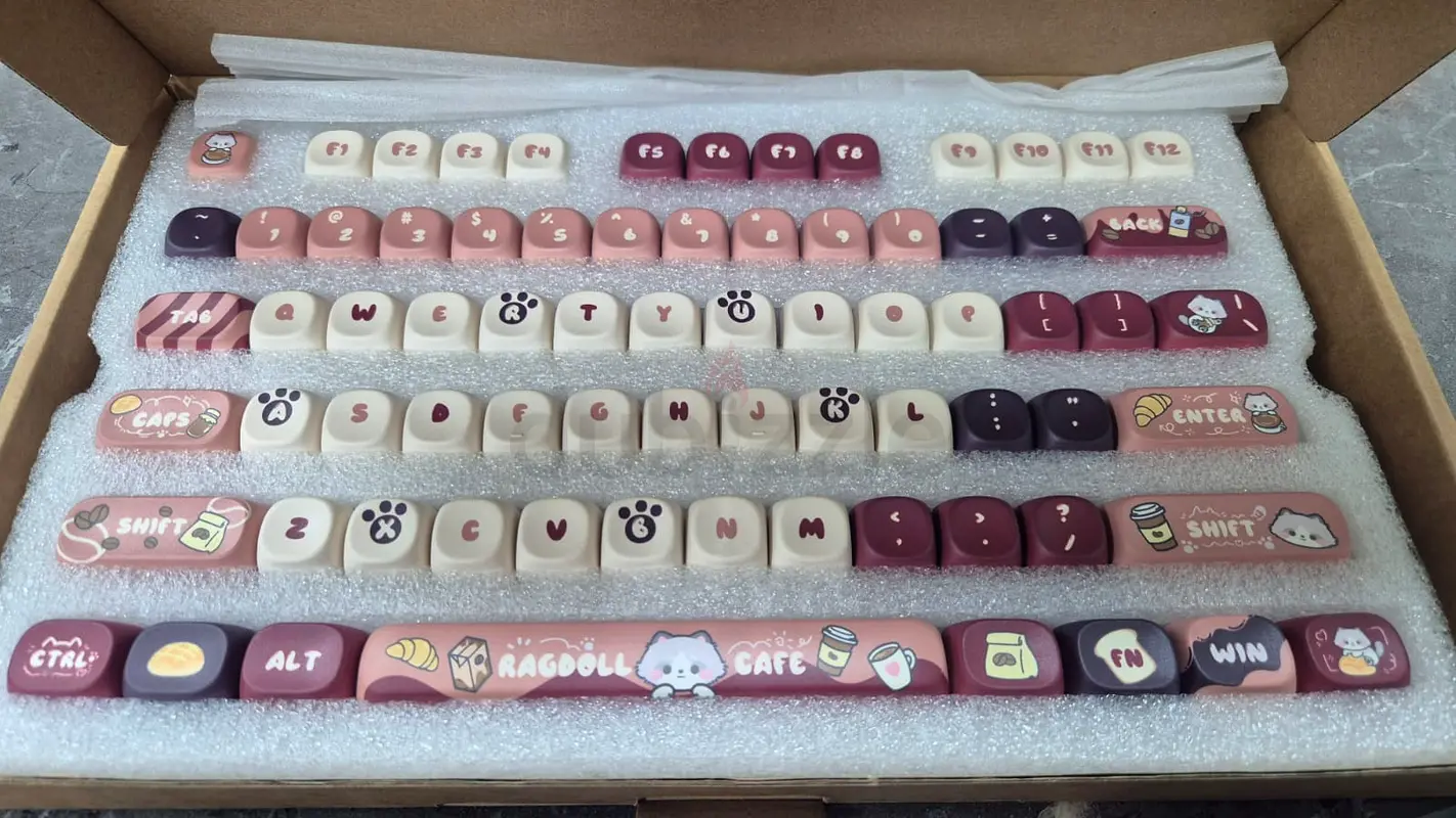 Upgrade your mechanical keyboard with this MOA Ragdoll Cafe keycaps set. Designed to add personality, style, and comfort to your setup, this set combines adorable aesthetics with a premium typing experience.