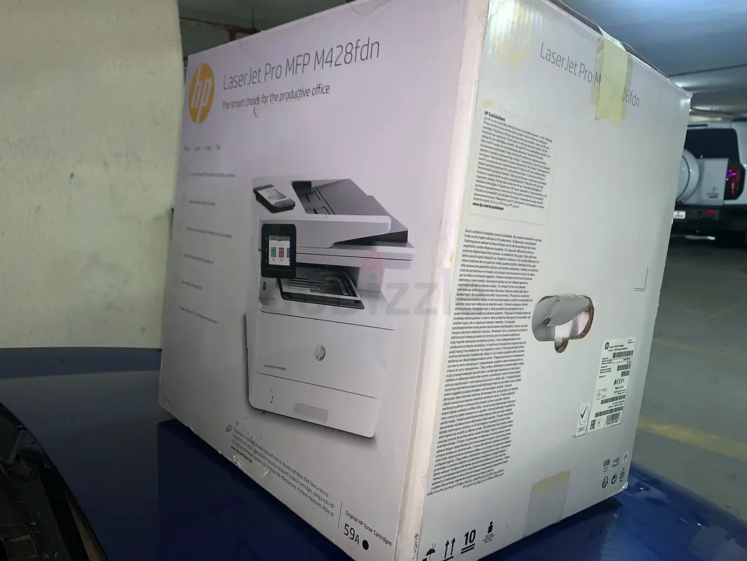 “For sale: Brand new HP LaserJet Pro MFP M428fdn, never used. This is a multifunction printer: print, scan, copy, and fax. Print speed up to 38 pages per minute with automatic duplex printing. Ideal for small to medium offices. Includes all original accessories in its box.”