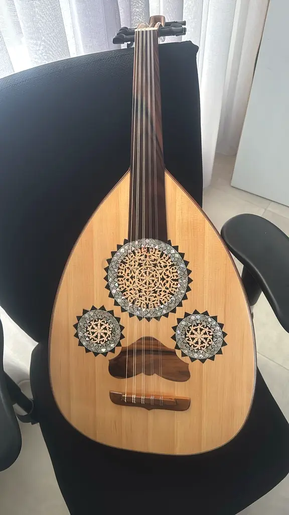 I am selling a beautiful oud, a traditional Middle Eastern string instrument. This oud has been well maintained and is in excellent condition, showing minimal signs of use. It has a rich, warm sound and is perfect for anyone wanting to explore Arabic music or add to their collection. The craftsmanship is evident in the intricate designs on the body, making it not only a musical instrument but also a stunning piece of art.