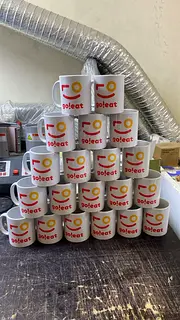 I have a set of brand new customized mugs featuring a unique design. These mugs are in flawless condition and have never been used, making them perfect for collectors or as gifts. They would stand out in any kitchen or office, showcasing the 'goleat'