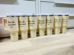I'm offering a delightful Personalized Travel Mugs Collection that is perfect for anyone who loves to enjoy their beverages on the go. These mugs are brand new, in flawless condition, and have never been used. Each mug is customized with a unique nam