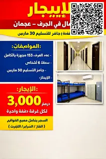 متاح للإيجار – استديوهات سكن عمال | الجرف