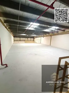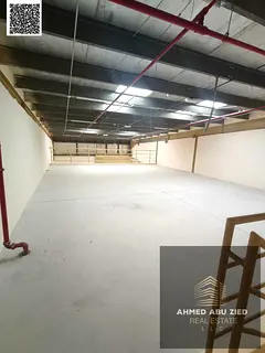 اكبر مستودع مع وجود ميزانين و جاهز للايجار السنوي بالجرف الصناعية 1 - المساحة 3000 قدم مربع - الكهربا 22 كيلو وات - حمام - علي شارع رئيسي