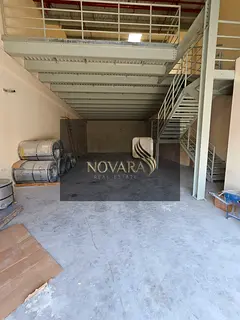 🏢 التصميم: طابق أرضي + طابق نصفي (ميزانين) يوفر مساحة إضافية للمكاتب أو التخزين