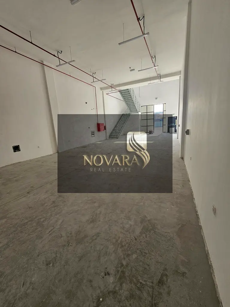 مجمع مستودعات للإيجار في الجرف الصناعية 3، ميزانين خرساني، ارتفاع 12م، كهرباء 40KVA، طريق مزدوج، الإيجار 130 ألف درهم.