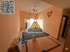 شقة بمساحة كبيرة تحتوي على غرفة وصالة مع بلكونة، وحمامين، تقع بالقرب من مدرسة الحكمة، مع سهولة الوصول إلى دبي والشارقة.