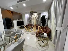 Furnished corner villa for monthly rent in Al Zahiyah, Ajman. Fully furnished with very clean VIP furniture. Features 4 spacious master bedrooms, a very large kitchen, a maid's room, and a separate majlis (formal sitting room) with a bathroom.