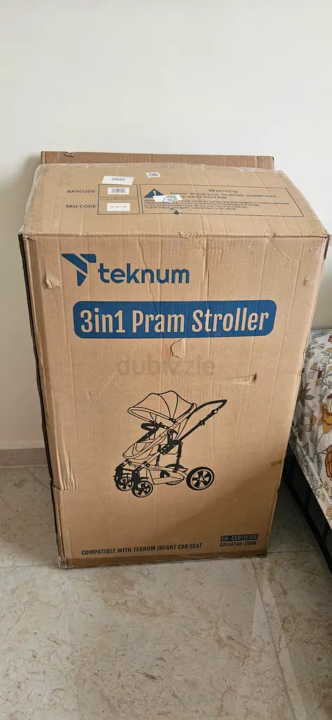 I'm selling a brand new Teknum 3-in-1 Pram Stroller in a stylish khaki color. This pram is in flawless condition, having only been used once. It's perfect for your little one, suitable for babies under 2 years.