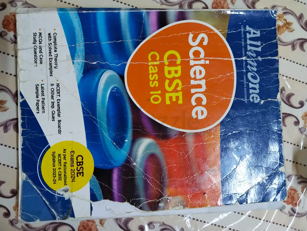 I'm selling my used CBSE Class 10 Science Textbook - All in One. This paperback book is perfect for secondary school students preparing for their exams. It's about 5-10 years old and shows signs of average wear and tear, but it still has plenty of life left for studying. The pages are all intact and it has been used normally, making it a great resource for learning.