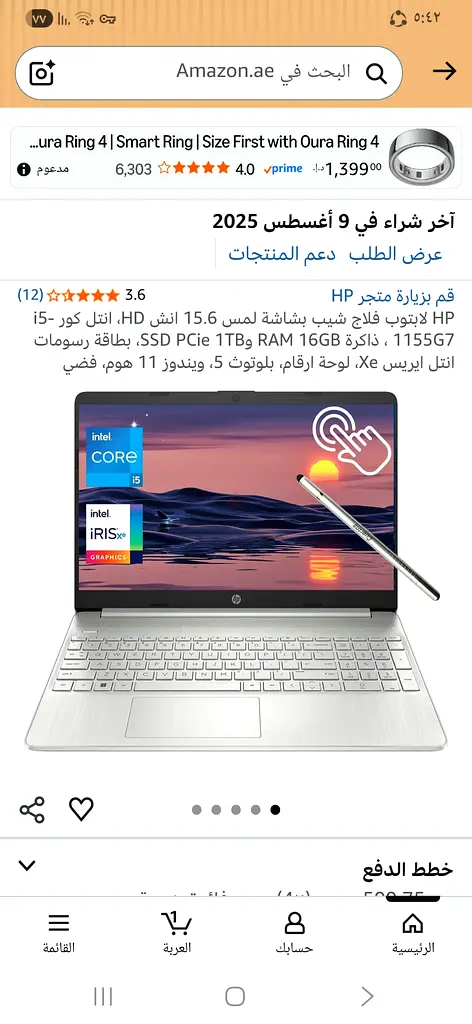 كامل + حالة ممتازة 📄 الوصف: لابتوب HP فلاج شيب بحالة ممتازة جداً، استخدام خفيف ونضيف 🔹 المواصفات: Intel Core i5-1155G7 RAM 16GB SSD 1TB سريع جداً شاشة 15.6 بوصة HD كارت شاشة Intel Iris Xe ويندوز 11 لوحة أرقام 🔹 الحالة: الجهاز شغال ممتاز وسريع الشاشة واضحة جداً التاتش فقط لا يعمل 🔹 ملحقات كاملة: الشاحن الأصلي الكرتونة كل المستندات والضمان (لو متوفر) 💰 السعر: 1700 درهم (قابل للتفاوض البسيط)