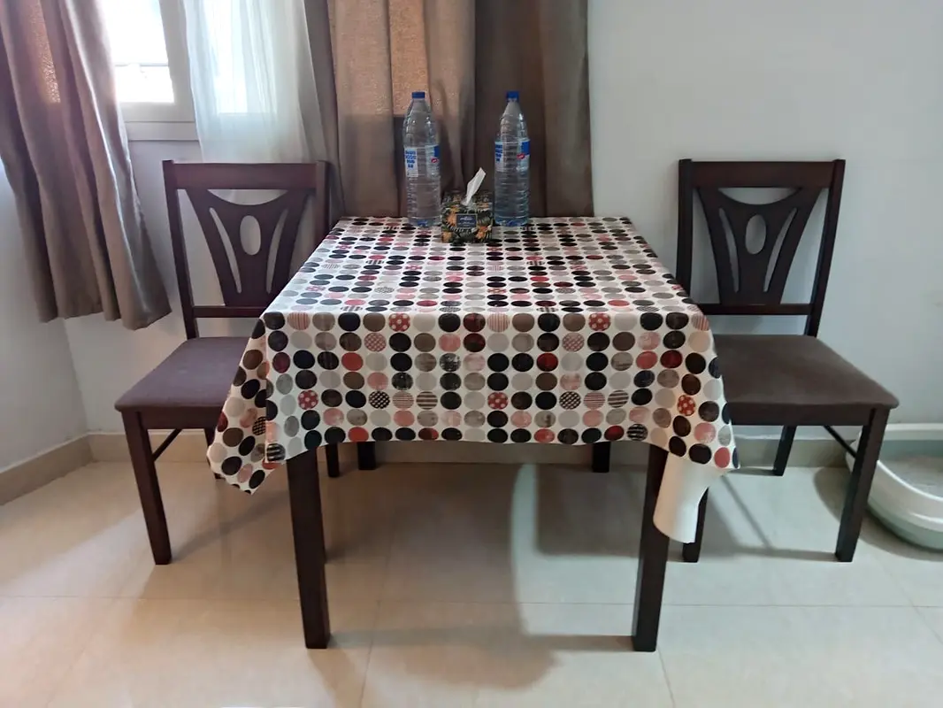 I'm selling this simple yet functional dining table set that comes with two matching chairs. It's perfect for small dining spaces or as a cozy breakfast nook. This set has been gently used for about 1-2 years and has held up well, showing good condition overall. The table is rectangular, providing ample space for meals or activities. The brown color adds a warm, inviting feel to your dining area. Whether you're hosting friends or enjoying a quiet dinner, this set is both practical and stylish for everyday use.