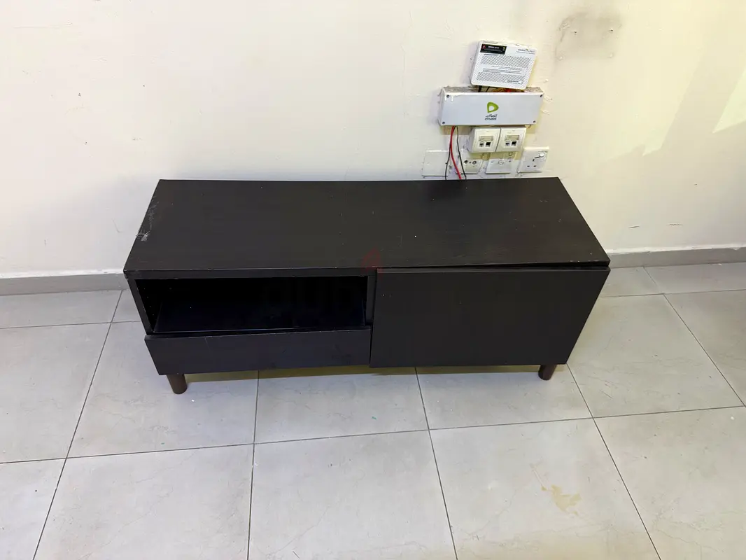 I'm selling a stylish black rectangular coffee table that is perfect for any living space. This piece is around 1-2 years old and is in good condition, showing only normal signs of usage. It features a simple design, offering a storage drawer for convenience. The table has a seating capacity of 2, making it great for small gatherings.