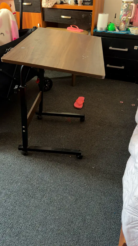 I’m selling a functional rolling study table that’s perfect for little ones aged 6-12 months. This brown table, with its sturdy rectangular design, is in good condition and has been used normally. It offers a great workspace for various activities and is easy to move around thanks to its wheels. Ideal for both study and play, it will fit well in any room. Don't miss out on this versatile addition to your child's space!