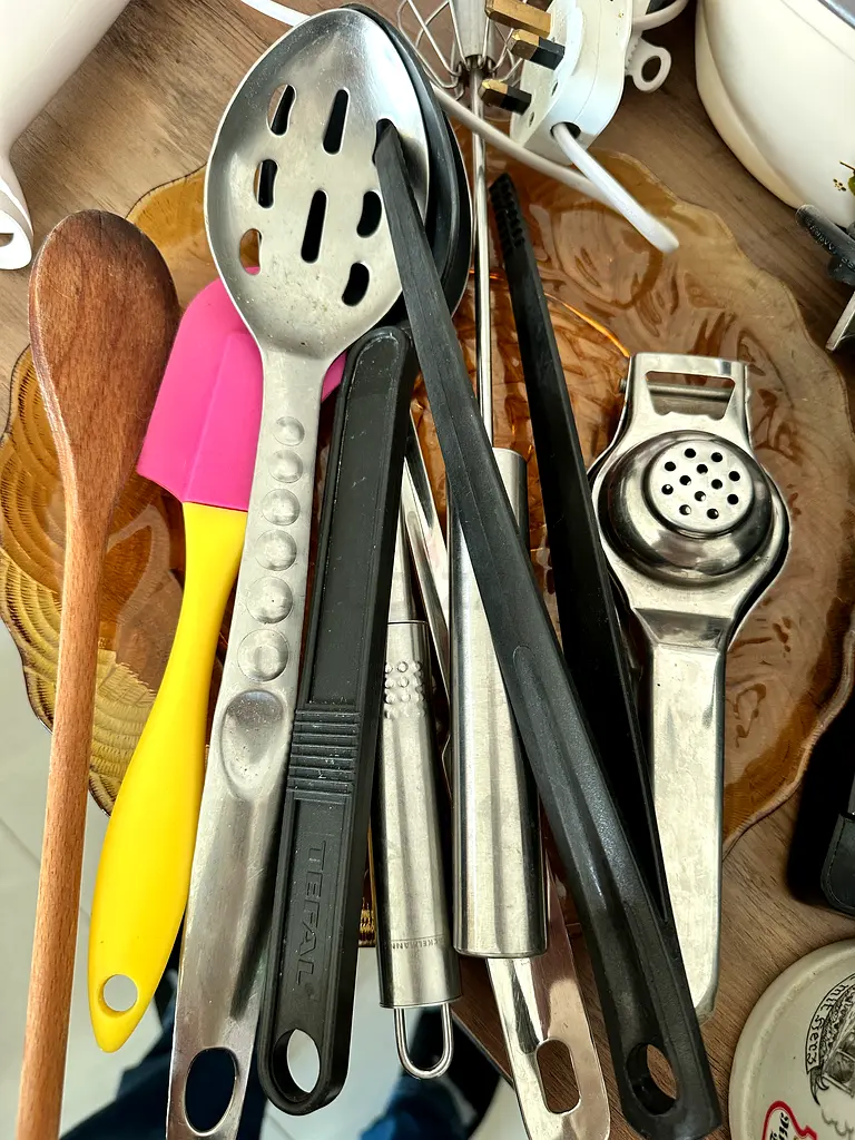 I'm selling an assorted collection of kitchen tools and utensils that have only been used once, so they are in flawless condition. These handy items will add convenience to your cooking experience with their practical designs. This set includes a variety of stainless steel and plastic tools perfect for different cooking tasks. From ladles and slotted spoons to peelers and tongs, each piece is crafted for ease of use and efficiency in the kitchen. They are all clean and ready for a new home. Whether you're setting up your first kitchen or looking to upgrade your cooking tools, this set is a great addition.