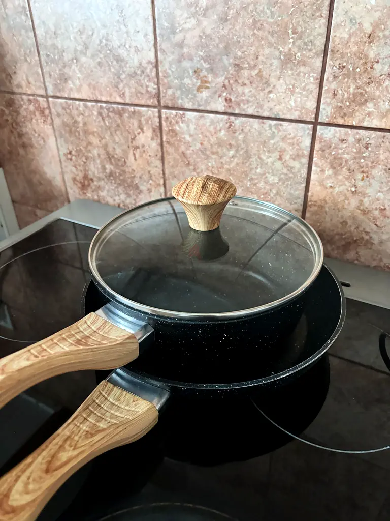 I'm selling this excellent quality cookware set with a lid that I've been using for just a few months. The sleek black finish and wooden handles make it not only functional but also stylish in the kitchen. All pieces are in excellent condition, showing minimal signs of normal usage. They heat evenly and the lid is perfect for keeping your meals hot and delicious. There's no warranty, as it's still a fairly new addition to my collection. If you're looking for reliable cookware to enhance your cooking experience, this set is perfect for you.