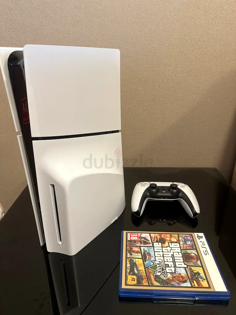 I'm selling my PlayStation 5 Slim in white. I bought it about 1–2 years ago and it's in good condition with light usage. It comes with one white DualSense controller and a physical disc copy of Grand Theft Auto V. The console works well, powers on, and runs games smoothly. I'm including the console, controller, and the GTA V disc only — no extra cables or games are guaranteed beyond what's shown. Local pickup preferred.