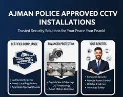 We provide professional CCTV camera installation services in Ajman, fully approved by Ajman Police. Our team of certified technicians ensures your surveillance system meets all Ajman Police security standards — from site survey and camera layout desi