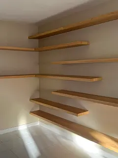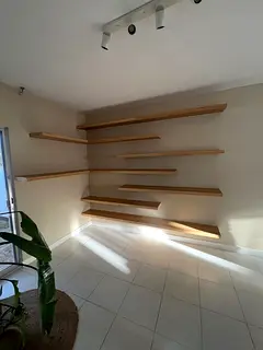 Custom Built-In MDF Wall Niche Shelving with Solid Wood Floating Shelves and