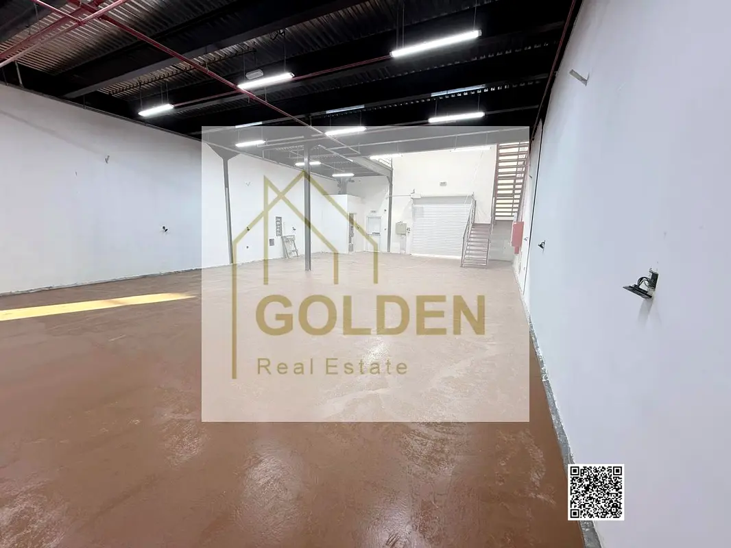 For annual rent: New brand an industrial warehouse with mezzanine in Al Jurf Industrial Area – Ajman, located in a vibrant industrial zone serving various commercial and industrial activities, with easy access to main roads that facilitate smooth truck movement and efficient transportation, loading, and unloading operations.