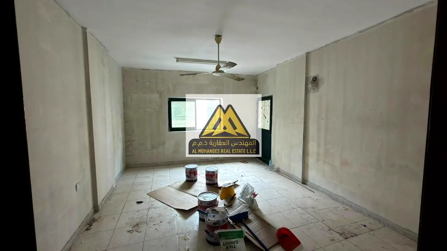 A spacious apartment available for annual rent in Al Nakheel 1, Ajman, featuring three bedrooms, a separate living room, a master room, 3 bathrooms, and 2 balconies. The apartment is fully maintained before handover, without AC (AC to be provided by tenant). The location is prime, near Gold Souq, Diwan Towers, and the Corniche.