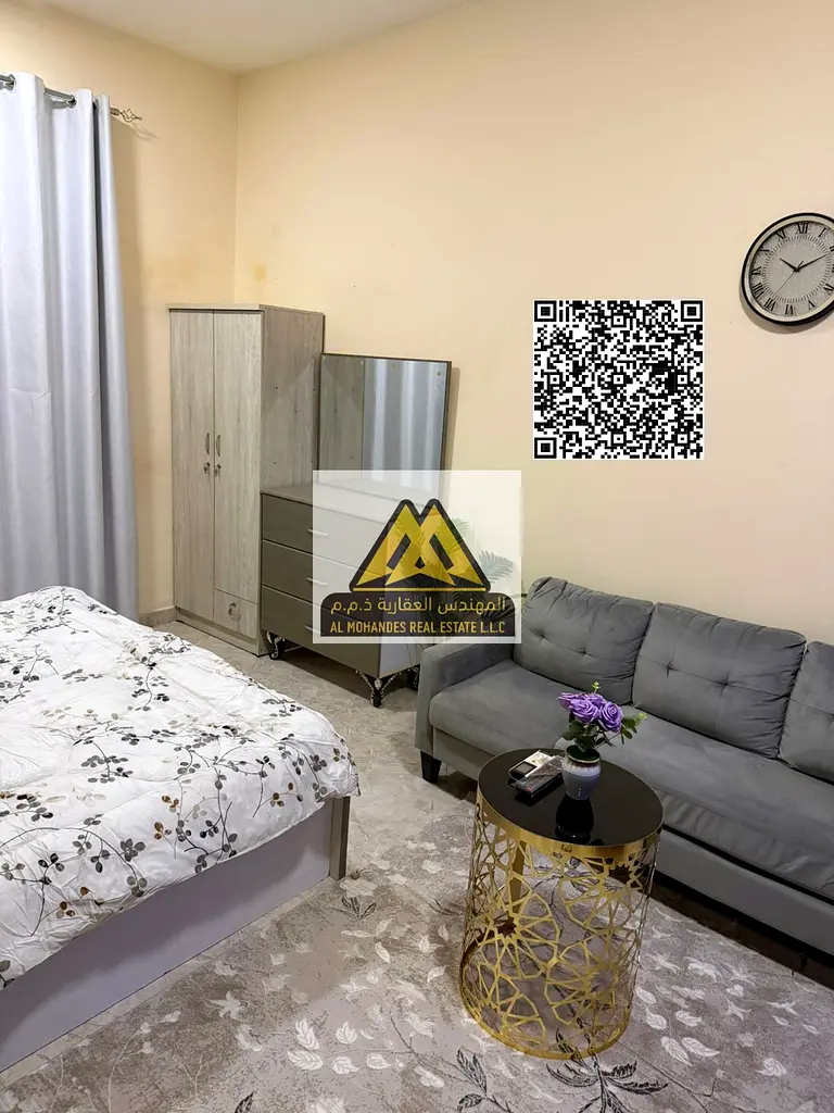 Second-occupancy studio with a suitable space, featuring a balcony with a direct view of Mohammed Bin Zayed Street, and a private parking within the building. Ideal for individuals seeking a ready-to-move-in and comfortable home.