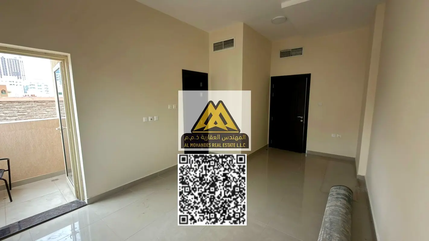 Apartment for annual rent in Ajman Corniche, Al Nakheel 1 area, second building on the Corniche, prime location close to all services and easily accessible.
