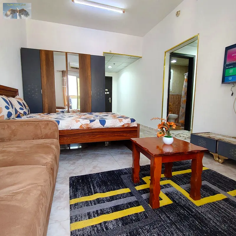 Furnished studio available for rent in a prime location in Al Rashidiya 1, Ajman, directly behind Ramada Black Hotel and very close to Al Mina Street,
