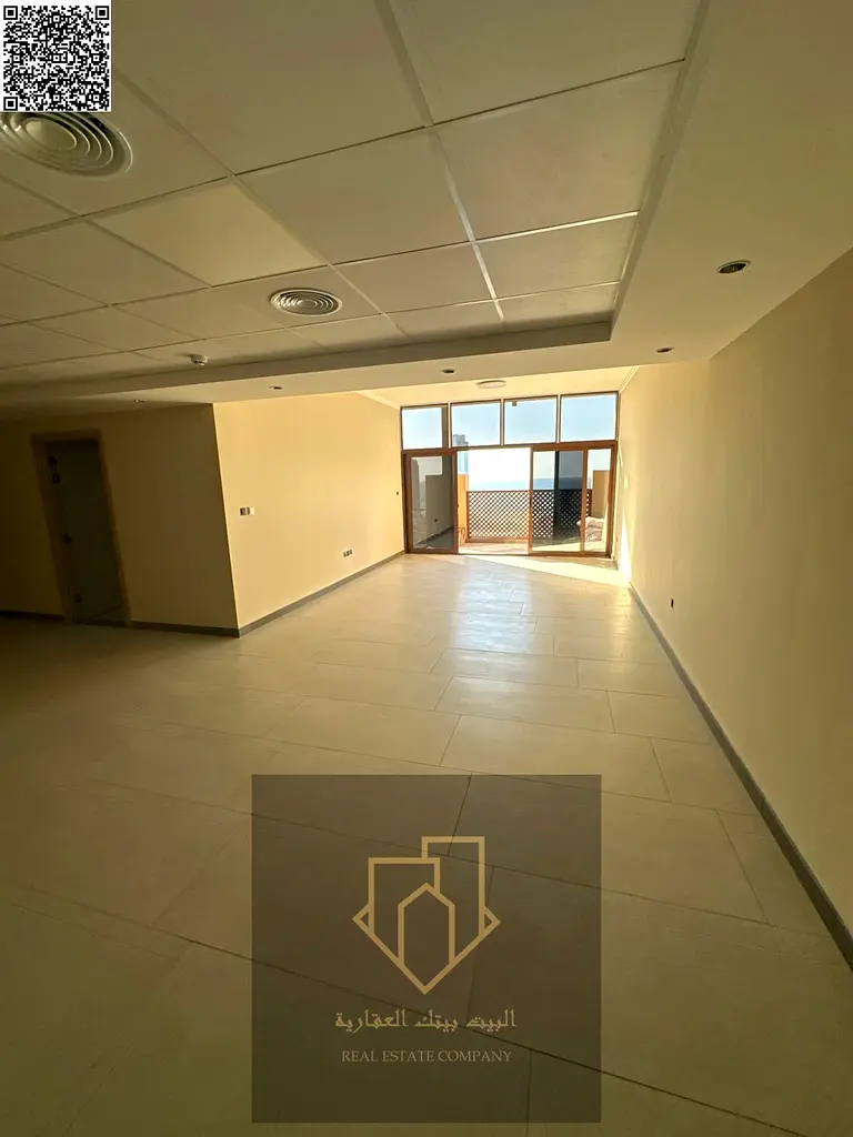 Three-bedroom apartment with a very large and excellent layout, featuring free central gas, free central air conditioning, and free parking. The apart