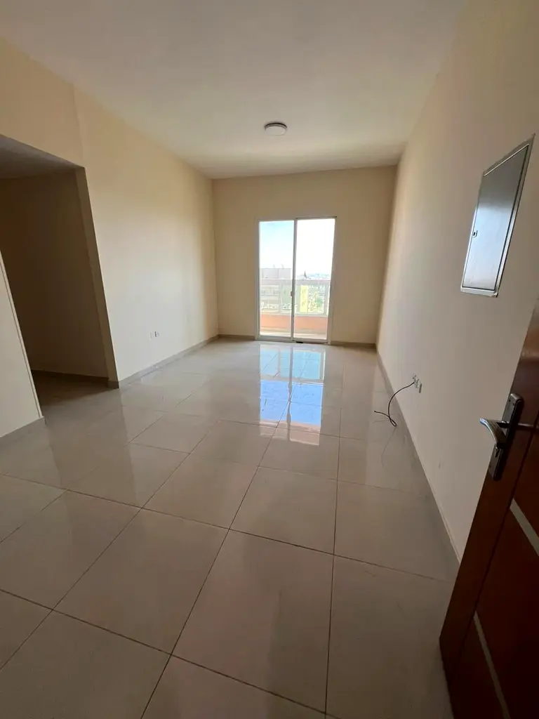 For annual rent in Ajman, in the Al Rawda area behind Al Hamidiya Police Station: two bedrooms, a living room, three bathrooms, a balcony, and a large kitchen. The price is 45,000 AED, payable in 4 or 6 installments. A security deposit is required (check, not to be cashed).