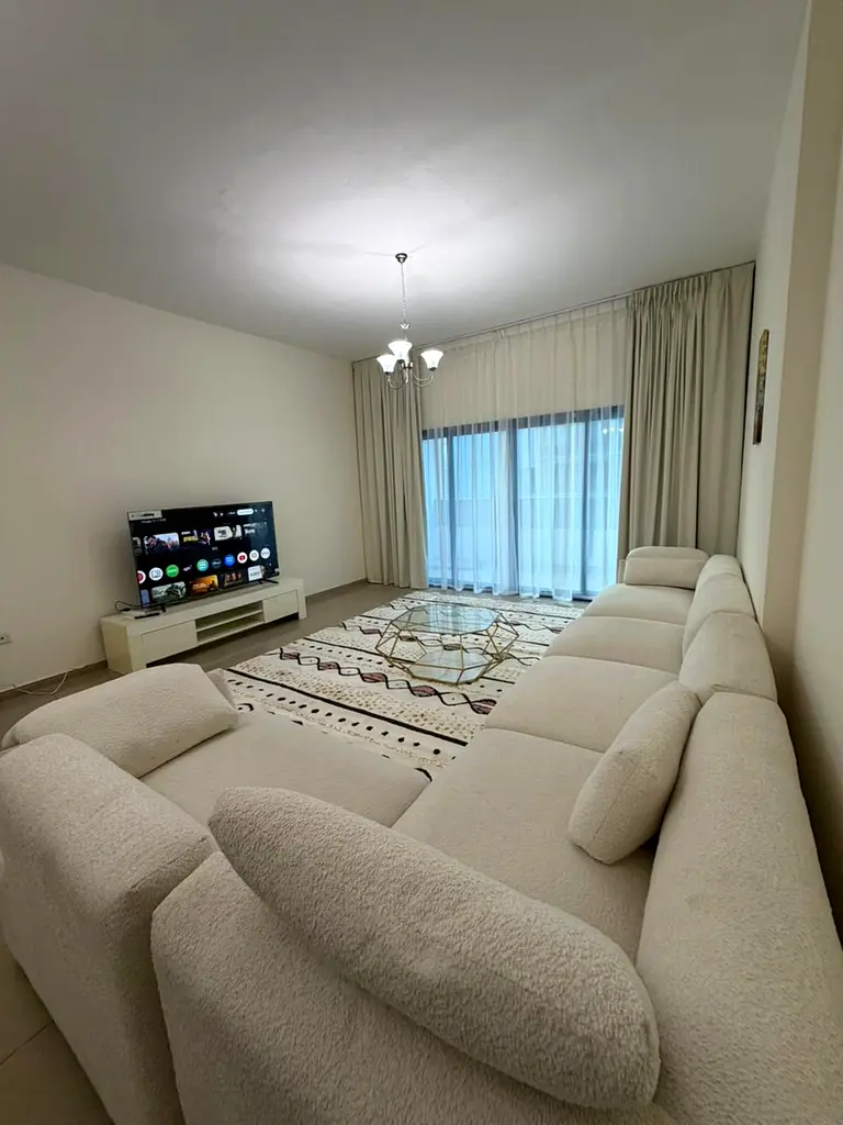 For rent in Ajman, first occupancy, sea view. Two bedrooms, living room, two balconies, very spacious. Price: AED 6000. Two months: AED 5500. Security deposit: AED 1500.