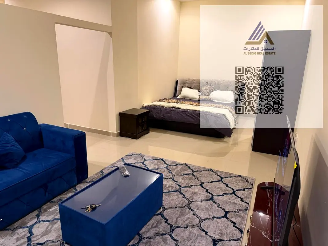 Furnished studio apartment for monthly rent in Al Rawda, Ajman. Separate kitchen, brand new furniture.