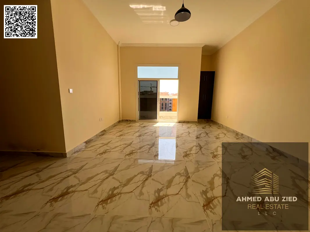 Two-bedroom apartment with a living room for annual rent in Al Muwaihat 3, on Academy Street, in a brand new building. First occupancy, prime location