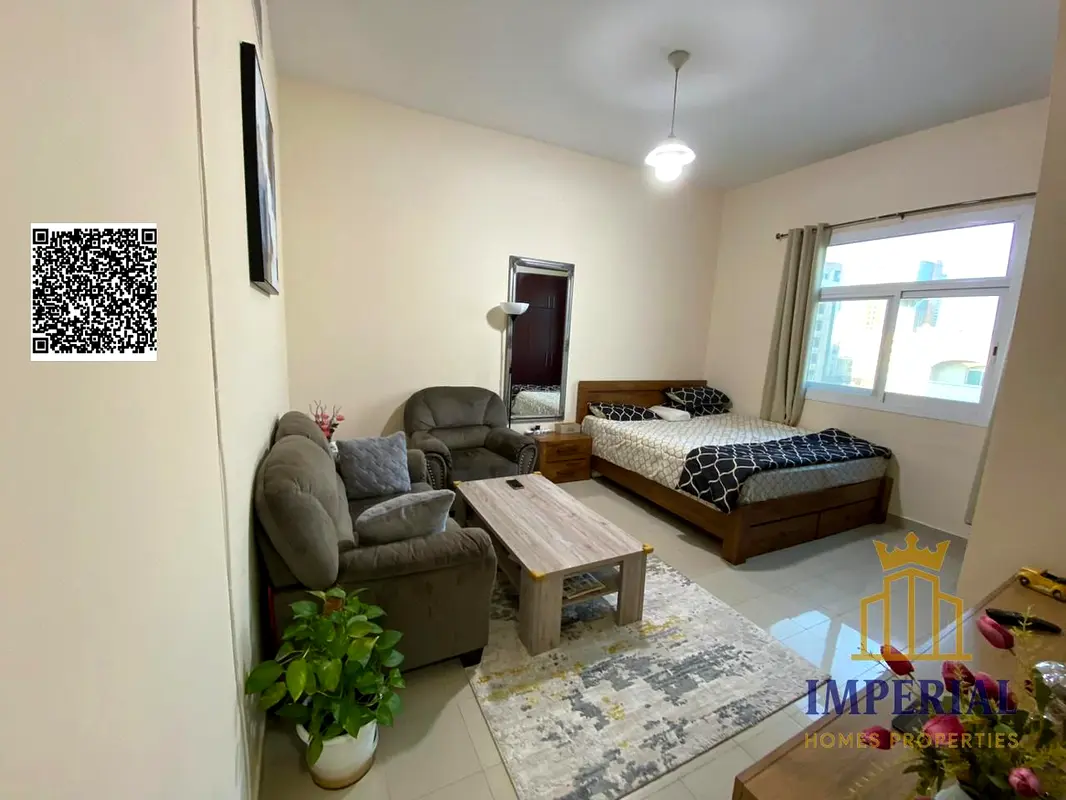 Studio with separate kitchen and central air conditioning, next to Sheikh Rashid bin Humaid Mosque