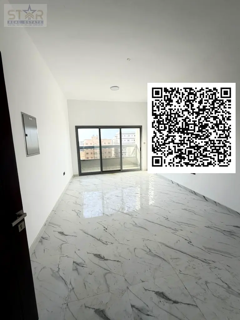 New building, first occupant, one bedroom and living room, 2 bathrooms with balcony, annual rent in Ajman