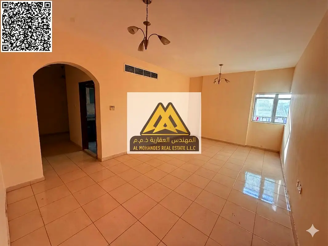 A one-bedroom apartment with a living room and bathroom is available for annual rent in Al Nuaimiya 1, next to Al Nuaimiya Towers.