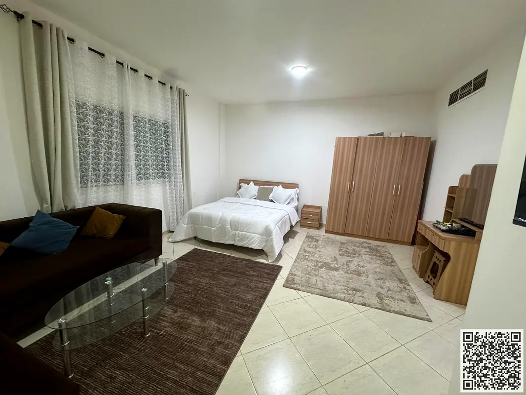 Furnished studio apartment for rent in Ajman, Al Nuaimiya 2, with clean and tidy furnishings. Includes all bills and internet.