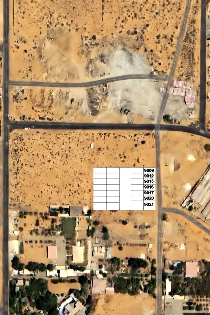 The plots directly overlook the main road. Each plot is 160 square meters (1,722 square feet). Number of plots: 7 adjacent plots. Price: AED 415,000 only, including registration and ownership fees.