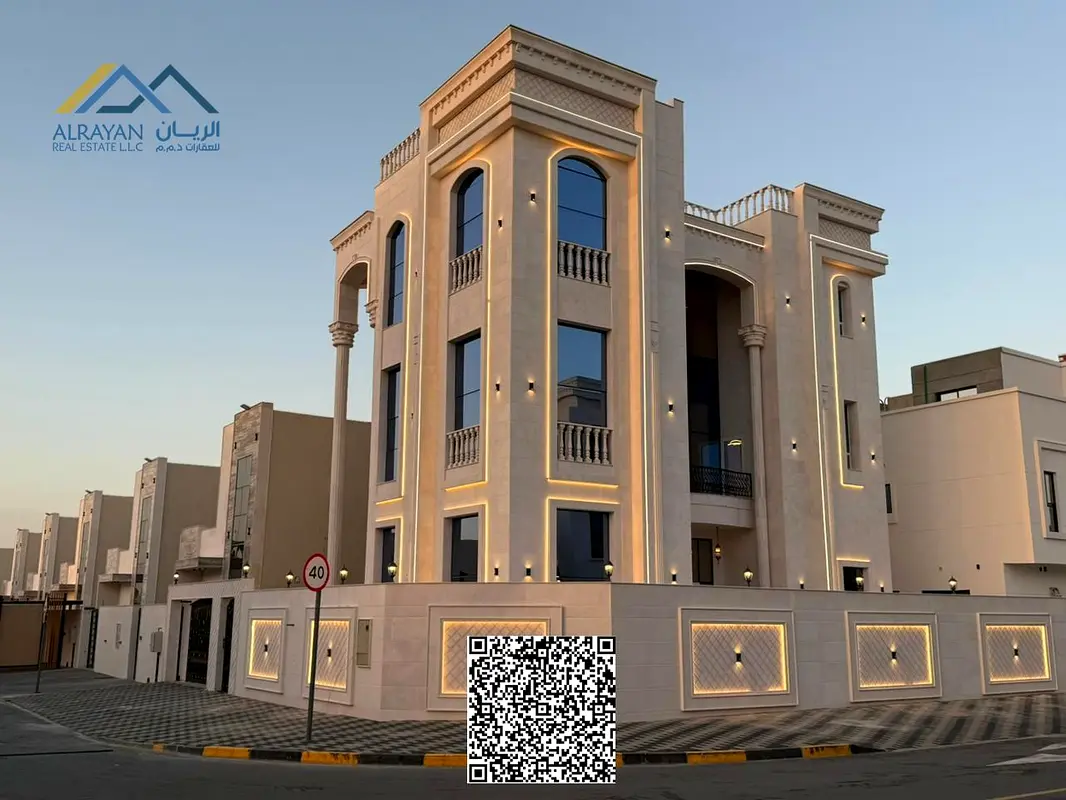 Villa details: Close to Sheikh Ammar Street, the Saudi German Hospital, Nesto Al Tallah, services, and a park. Near Sheikh Mohammed Bin Zayed Road. Ground floor, first floor, and roof. Registration fees, electricity, water, and air conditioning included. Opposite the mosque. Prime residential location with paved streets.