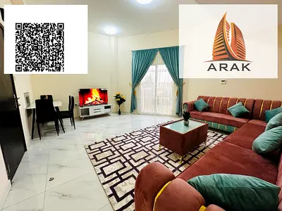 The most luxurious fully furnished one-bedroom apartment for monthly rent - in Ajman - Al Jurf - Al Yasmeen Towers - opposite Ajman City Center